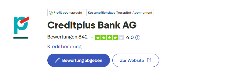 Die Creditplus Bank verfügt auf Trustpilot.com über insgesamt 842 Bewertungen und Erfahrungsberichte. Die Durchschnittsnote ist mit 4,0 Gut. Explizite Erfahrungsberichte über eine Umschuldung liegen uns nicht vor.